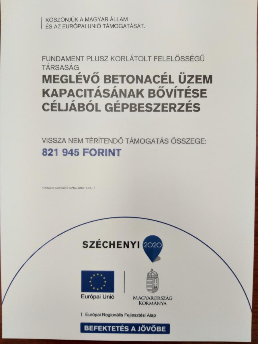 A projekt címe: Kapacitásbővítő beruházás a Fundament Plusz Kft-nél, Zalaegerszegen